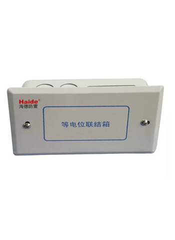 為防止不同接地體由于地電位的不等,在雷擊過程中,容易發(fā)生反擊的現(xiàn)象,需使用等電位連接盒。連接盒兩端的電位差大于所限峰值電壓時,連接器導(dǎo)通,迫使連接器兩端不同接地體電位基本相等,消除接地體間放電現(xiàn)象,從而避免了由于地電位差值過高危及人身及設(shè)備安全。
