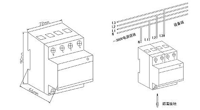 電源相線(L)、零線(N)分別接入電涌保護器相應接線端子,保證牢固及可靠,將避雷器接地端與防雷地線(推薦接地電阻≤4Ω)作良好電氣連接。
