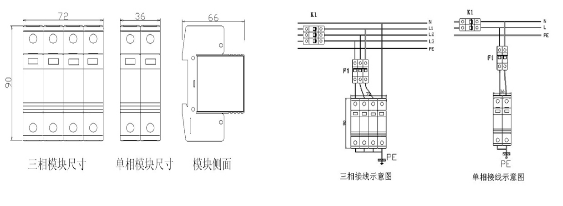 電源相線(L)、零線(N)分別接入電涌保護器相應(yīng)接線端子,保證牢固及可靠,將避雷器接地端與防雷地線(推薦接地電阻≤4Ω)作良好電氣連接。