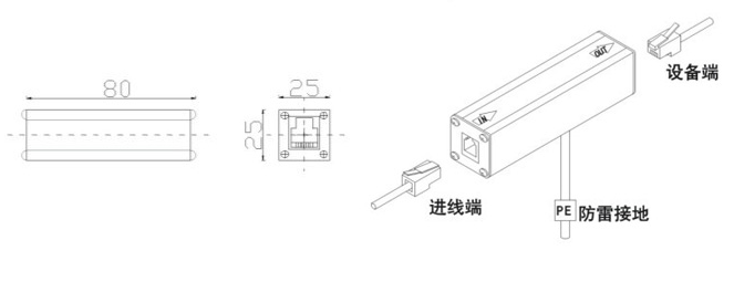 在被保護設(shè)備的線路接口前段串聯(lián)接入避雷器,“OUT”為設(shè)備端、“IN”為進線端,將避雷器接地端與防雷地線(推薦接地電阻≤4Ω)作良好的電氣連接。