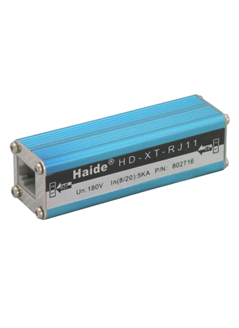 本產(chǎn)品殘壓輸出極低,并保證快速響應(yīng)時間。接口形式可選擇RJ11、RJ45、接線端子等,保護線路為分單路,串聯(lián)接法,具有雙重的過壓過流保護功能,典型應(yīng)用為電話機、ADSL、DDN、ISDN、傳真機、調(diào)制解調(diào)器、程控交換機等。