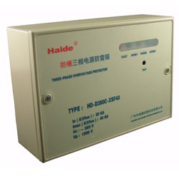 Electric surge protector of low-voltage distribution system, which is in the form of a box, is explosion proof and designed according to IEC standard. It has invalidation detection indication, overflowing and overheating protection, and powerful discharge capacity of lightning current. It's applicable to the protection of buildings' general supply system against lightning. This lightning arrester is very convenient to be maintained. It connects with the circuit in parallel and has no limit to the power of equipment fixed later.